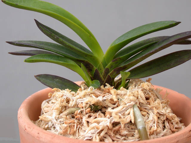 Неофинетия среднего размера с острыми бобовыми листьями.