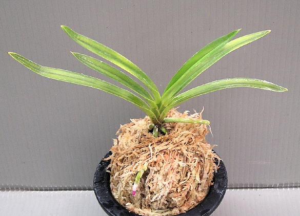 Популярная орхидея среднего размера с утонченными листьями, наделенная коричневым стволом и прекрасными рубиновыми корнями. В целом выглядит довольно аккуратно. Место соединения листа со стволом имеет очертание месяца.
