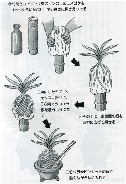 Оберните корни этими волокнами мха.