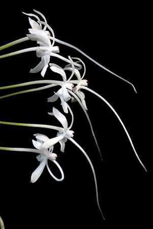 Цветок у этой неофинетии необычный и сильно отличается от цветов нео. Шпорец растет из центра цветка и устремлен вперед.